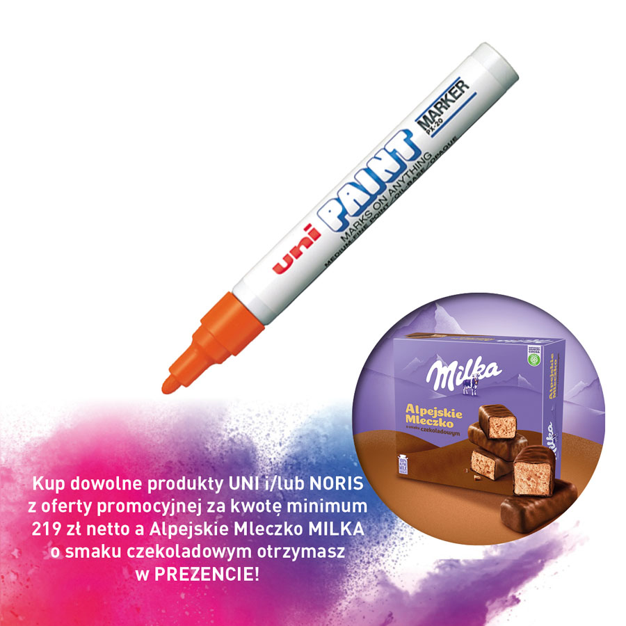 jm.: szt Kup dowolne produkty UNI i/lub NORIS z oferty promocyjnej za kwotę minimum 219 zł netto a Alpejskie Mleczko MILKA o smaku czekoladowym otrzymasz w PREZENCIE!